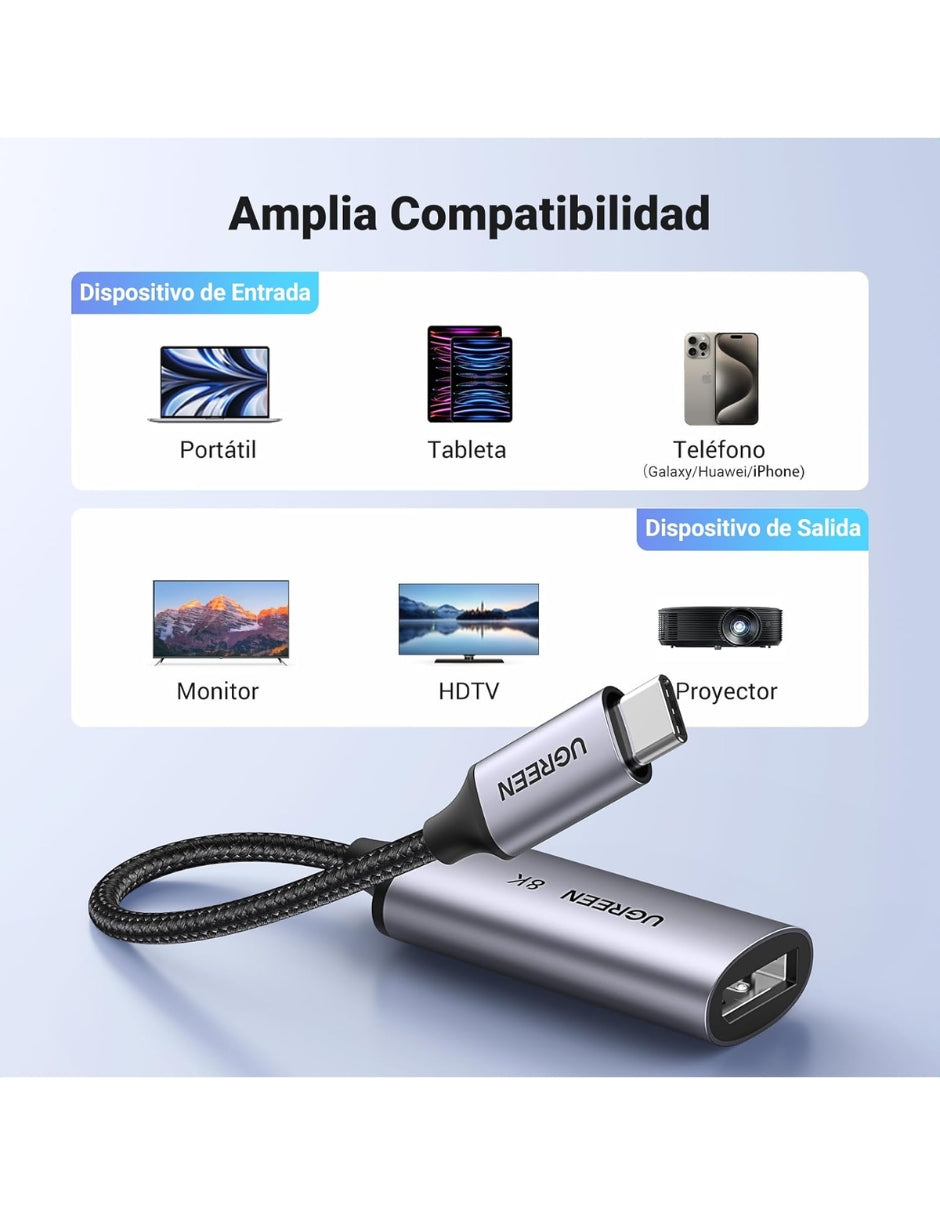 Adaptador UGREEN USB-C a DisplayPort 1.4 - 8K Ultra HD @60Hz y 4K @240Hz