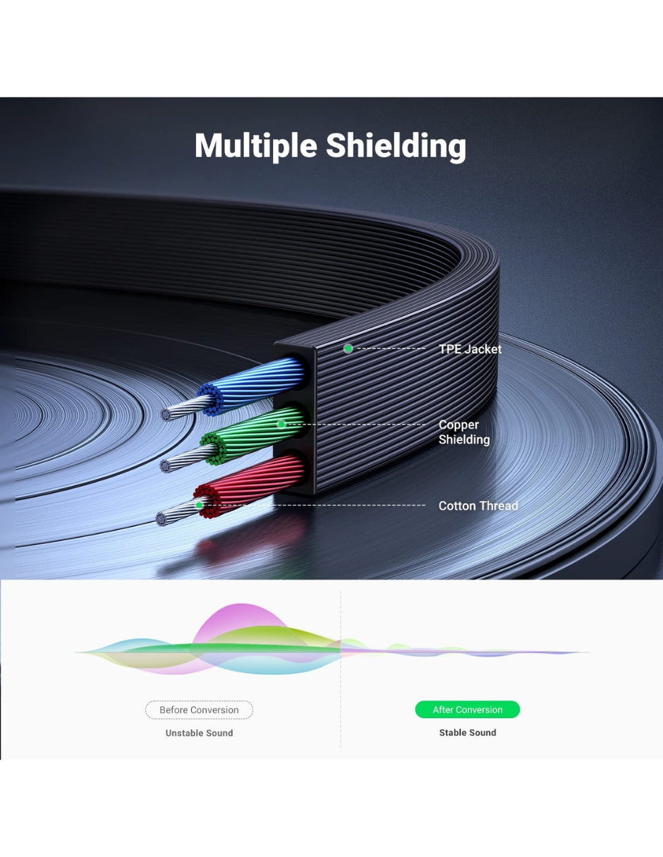 Calidad de Audio Superior: Conductores de cobre puro que garantizan una transmisión de audio estéreo de alta fidelidad.