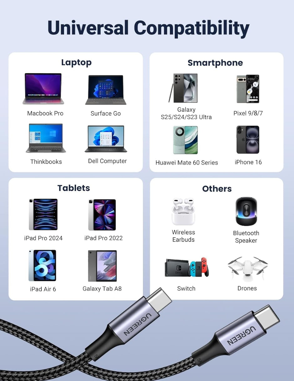 Optimiza tu estación de carga y alimenta dos dispositivos USB-C simultáneamente con el cable divisor UGREEN 35087. Diseñado para ofrecer versatilidad y eficiencia, este cable es la solución perfecta para usuarios de laptops, tablets y smartphones modernos.