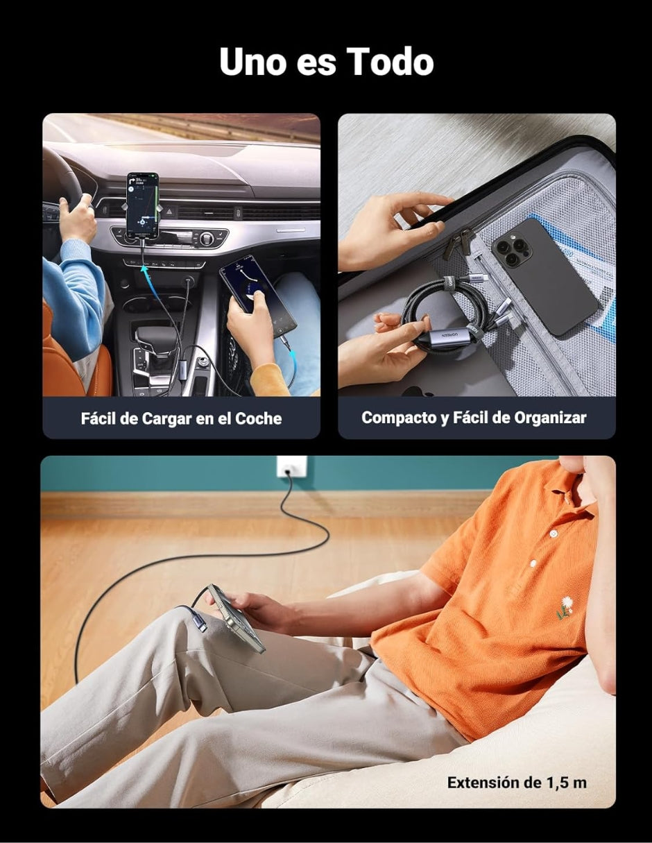Solo Carga, No Datos/Video: Este cable está diseñado exclusivamente para carga de energía; no es compatible con la transferencia de datos ni la salida de video/audio.