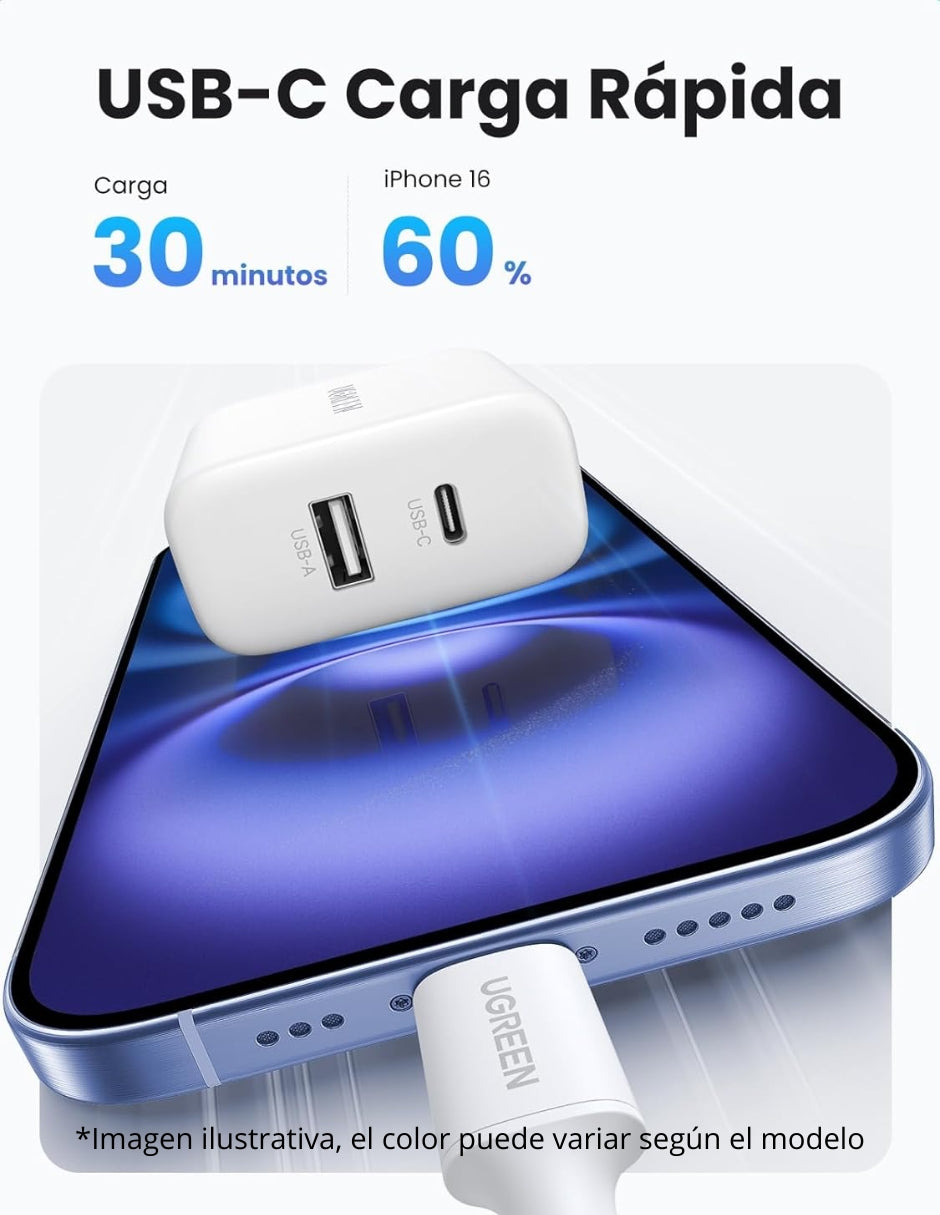 Cargador 2 en 1 Ugreen Paquete 2 pz. Carga Rápida 20W Negro