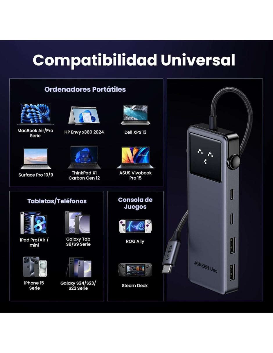 Diseñado con pantalla LED con expresiones de la serie UGREEN Uno y un cable trenzado sometido a más de 20,000 pruebas de flexión, garantizando resistencia y durabilidad a largo plazo.