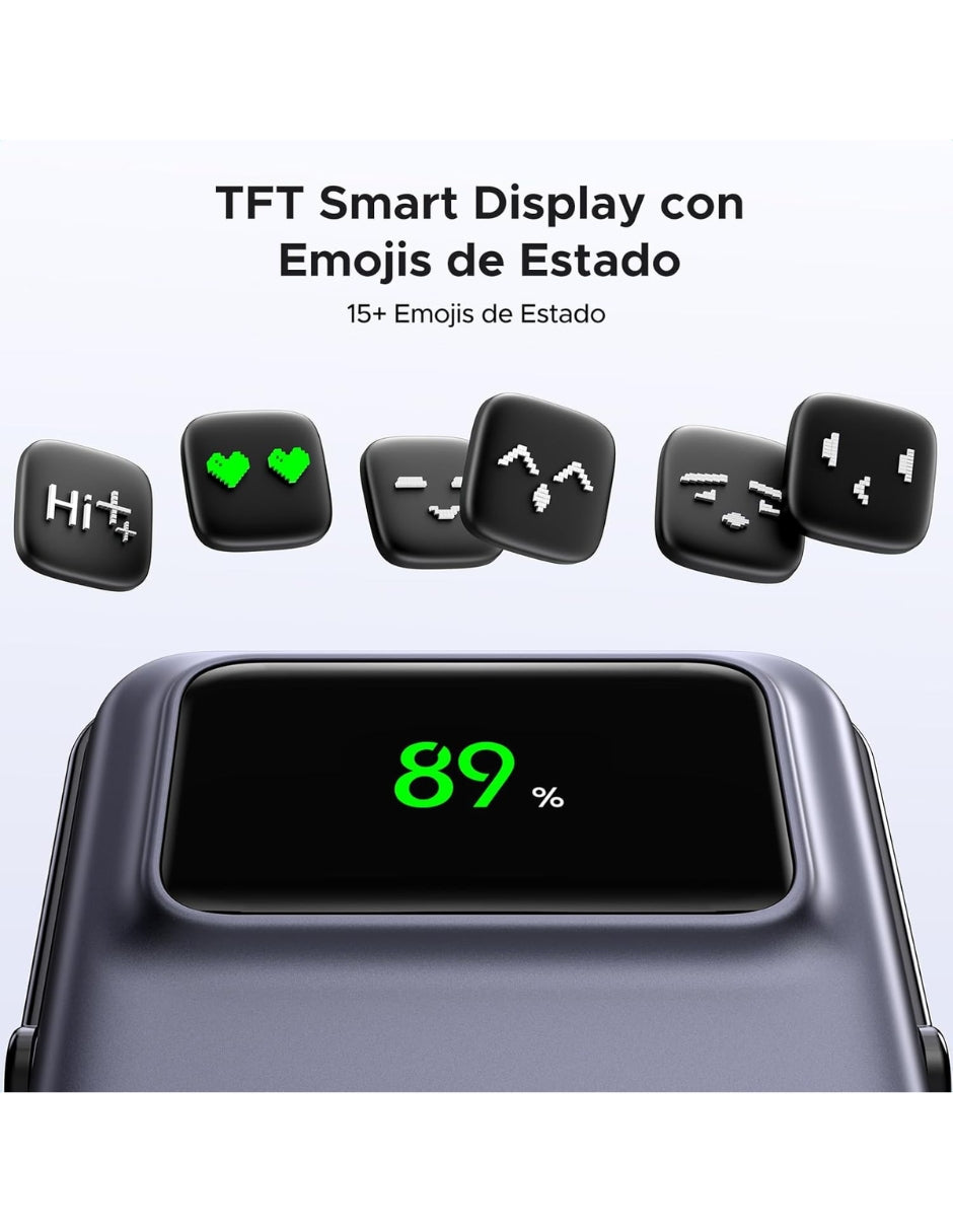 Apariencia Robótica: Banco de energía magnética tiene una pantalla TFT clara que muestra diferentes expresiones de acuerdo con el nivel de batería restante, lo que le permite medir rápidamente el estado de la batería de un vistazo, añadiendo un elemento divertido y personable