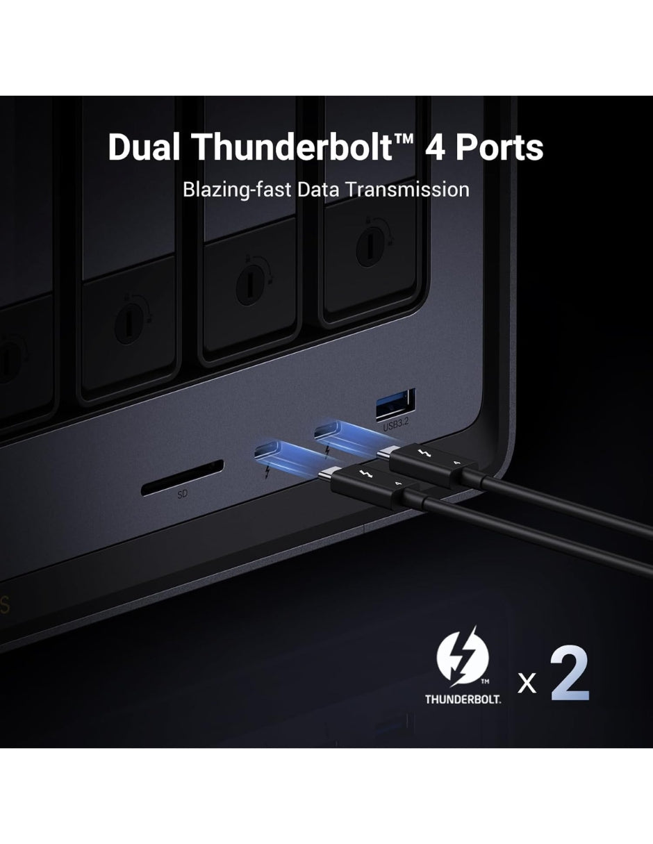 Puertos Duales 10GbE: Dos puertos de red de alta velocidad de 10 Gigabit Ethernet (GbE) que pueden agregarse para un ancho de banda total de 20G, ideal para transferencias de archivos grandes.